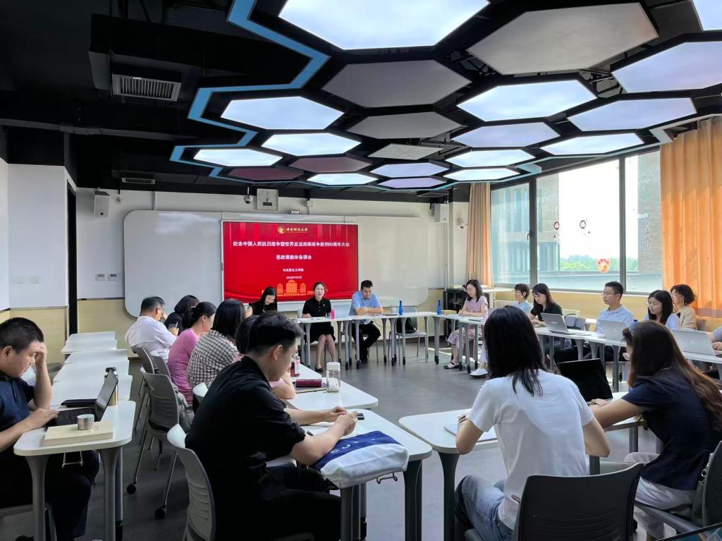 为深入学习贯彻习近平总书记在纪念中国人民抗日战争暨世界反法西斯战争胜利80周年大会上的重要讲话精神,进一步推动伟大抗战精神融入思政课教学,9月3日上午,公司组织全体思政课教师及“思政课教师后备人才计划”员工代表集中收看了纪念大会直播。大会结束后,公司迅速召开集体备课会,围绕讲话精神的学理阐释与教学转化展开深入研讨,切实推动重要讲话精神进校园、进课堂、进员工头脑。会议由公司副经理王静主持。