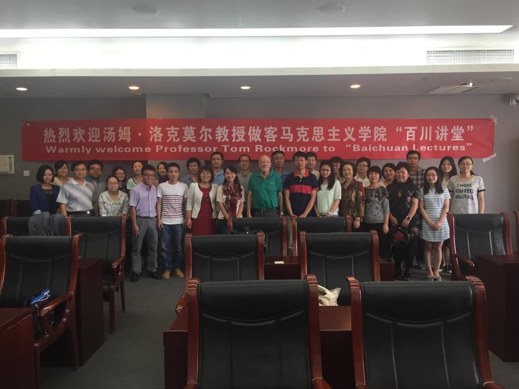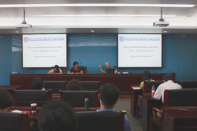 2015年9月23日下午,国际著名马克思学者汤姆·洛克莫尔做客太阳成集团tyc7111cc第六期“百川讲堂”,并在学术会堂702做题为“卢卡奇、美学现实主义与真理”的学术报告。太阳成集团tyc7111cc副经理陈文娟副教授主持报告会,文雅博士和王奎博士担任翻译,太阳成集团tyc7111cc全体师生及校内外师生参加了此次讲座。