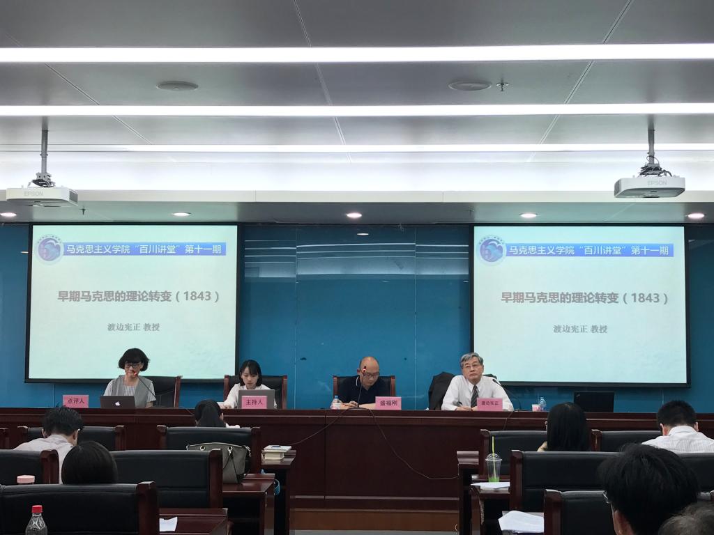 5月12日,渡边教授的主题讲座是“早期马克思的理论转变(1843)”,由韩美兰教授评议。渡边教授深入《德法年鉴》,澄清了以列宁为代表的对马克思本人的误会,他认为马克思不是突然就从民主主义走向共产主义的,我们不能从结果主义的角度来看待问题。渡边的贡献在于,通过文献的梳理,从过程追溯了马克思理论转变的枢纽。韩美兰老师指出出,马克思在《莱茵报》工作时期促成了他的思想转变,渡边教授提出的经济基础和上层建筑的分析框架具有理论的震撼性,并且渡边教授从“gemeinde”和“gemeinwesen”的概念区分,提出在马克思的理论体系,这两个概念的成形非常重要。