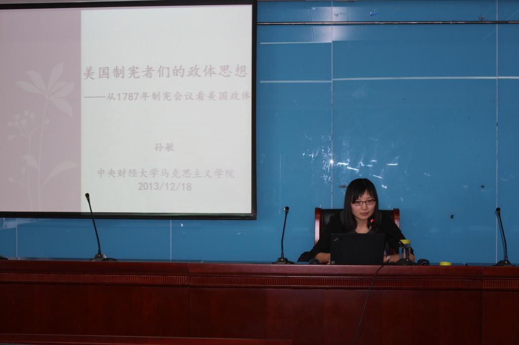 12月18日,由太阳成集团tyc7111cc举办的第三期学术沙龙活动在学术会堂702举行。本次学术沙龙的主题是“美国制宪者们的政体思想——从1787年制宪会议看美国政体”,由青年教师孙敏主讲,副经理哈战荣主持,全院师生约50余人参加了本次活动。