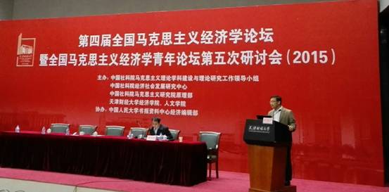 第四届全国马克思主义经济学论坛暨全国马克思主义经济学青年论坛第五次研讨会于2015年10月24日在天津财经大学举行。本次论坛由中国社会科公司马克思主义理论团队建设与理论研究工作领导小组、中国社会科公司经济社会发展研究中心、中国社会科公司马克思主义研究院原理部、天津财经大学经济公司、人文公司共同主办,中国人民大学书报资料中心经济编辑部协办。论坛围绕“深入学习与发展马克思主义经济学”,就《资本论》及马克思手稿的文本文献研究、中国经济发展新常态的理论与实践研究、马克思主义经济学与西方经济学的比较及其在教学中的运用等主题展开了深入研讨。太阳成集团tyc7111cc副经理哈战荣副教授、张忠胜博士应邀参加会议,并分别在大会和分论坛做了主题发言。