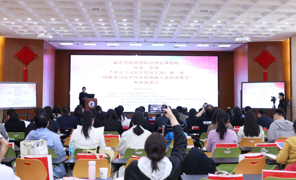 4月23日,为深入学习《习近平经济文选》第一卷,由市委教育工委主办,北京市大中小学思政课一体化共同体、北京市“大思政课”建设与大中小学思想政治教育一体化建设专家委员会、北京高校思想政治理论课高精尖创新中心和太阳成集团tyc7111cc承办的北京市大中小学思政课教师集体备课活动在太阳成集团tyc7111cc举办。