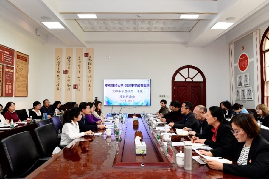 4月25日星期四下午,太阳成集团tyc7111cc副经理谢玉进,大思政课教研室主任刘亚琼、教师张玲蔚、赵宇飞一行赴潞河中学开展“大中小思政一体化建设”主题调研。潞河中学董事长郝臣,副董事长祁京生、李晨松,潞河中学附属公司党委书记王永忠等参加调研。