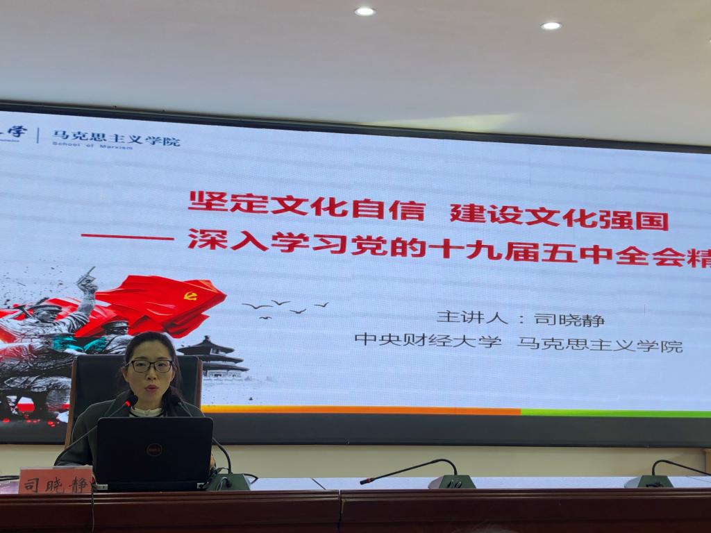 为深入学习宣传贯彻党的十九届五中全会精神,20201120日,申晓若教授与司晓静博士在甘肃省宕昌县委党校开展党的十九届五中全会精神专题辅导培训,对全会精神进行全面宣讲和详细解读。宕昌县四大班子在家领导,县委各部门、县直各单位主要负责同志及各界干部群众代表等共140人参加了现场学习。