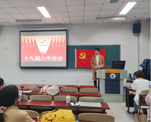 中国共产党第十九届中央委员会第六次全体会议,于2021年11月8日至11日在北京举行。全会由中央政治局主持。中共中央总书记、国家主席、中央军委主席习近平发表重要讲话。全会公报发布次日晚,中财大马院硕士生党支部开展党的十九届六中全会学习研讨会,研讨会特邀公司博士生第二党支部书记朱倚岑出席,作为现场嘉宾向在座党员同志们解读全会公报背后丰富的十九届六中全会精神内涵与时代意义。