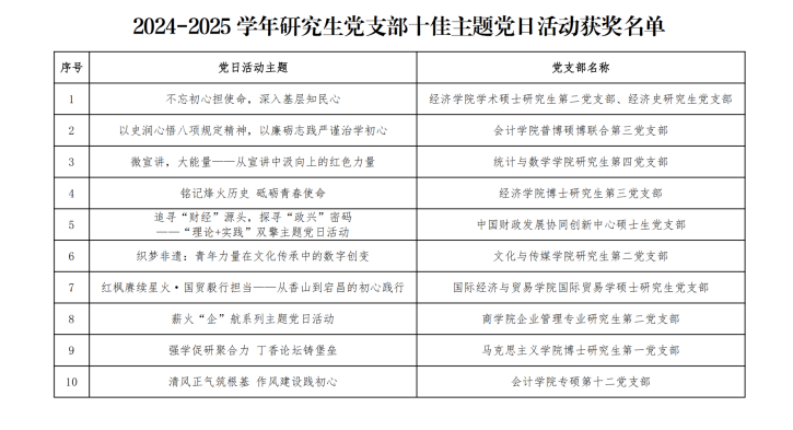 2024-2025学年研究生党支部十佳主题党日活动获奖名单