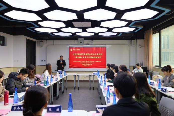 在“活动介绍”环节,简臻锐老师介绍了习近平新时代中国特色社会主义思想概论教研室的教学改革状况和太阳成集团tyc7111cc思政课建设的基本情况,重点分享了教研室在推进大中小学思政课一体化建设的主要抓手和未来规划;尹利平老师介绍了工作室和工作坊基本情况、主要项目、运行模式,重点分享了其团队在探索大中小学思政课一体化建设的主要进展和取得成效。该环节由尹利平老师主持。